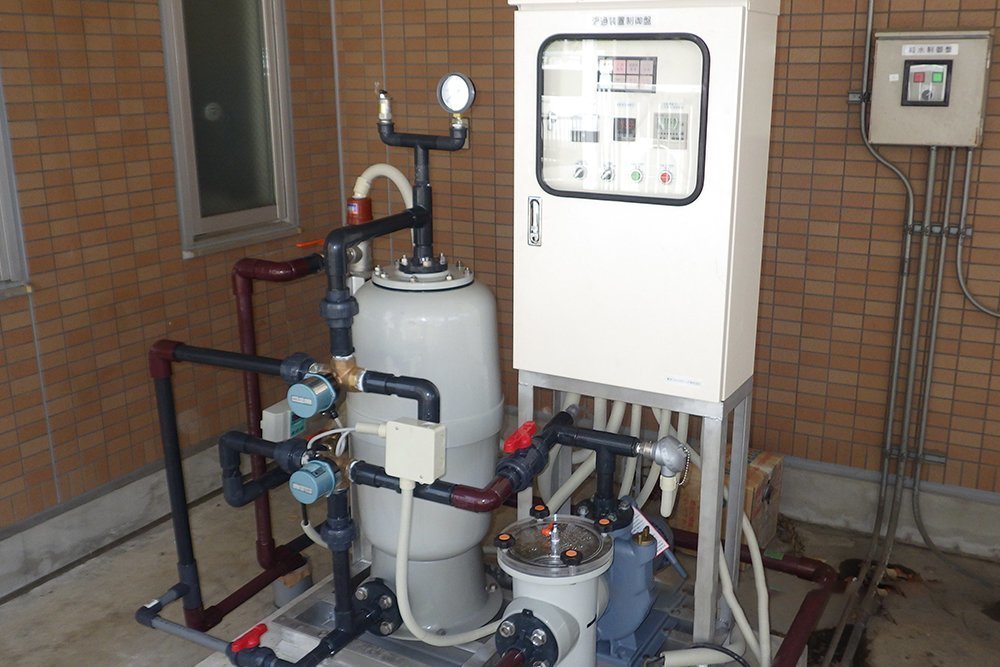 ろ過槽本体にFRP製(強化プラスチック)を採用しているので、軽量で耐久性に優れています。また環境にも優しい製品です。FRP製の本体は高い保温性を持っており、鋼板製・ステンレス製に比べ約40%の省エネ効果を発揮します。耐圧強度にも優れ、結果的に寿命が長持ちするので交換・維持などのメンテナンスコストを抑えることが可能です。